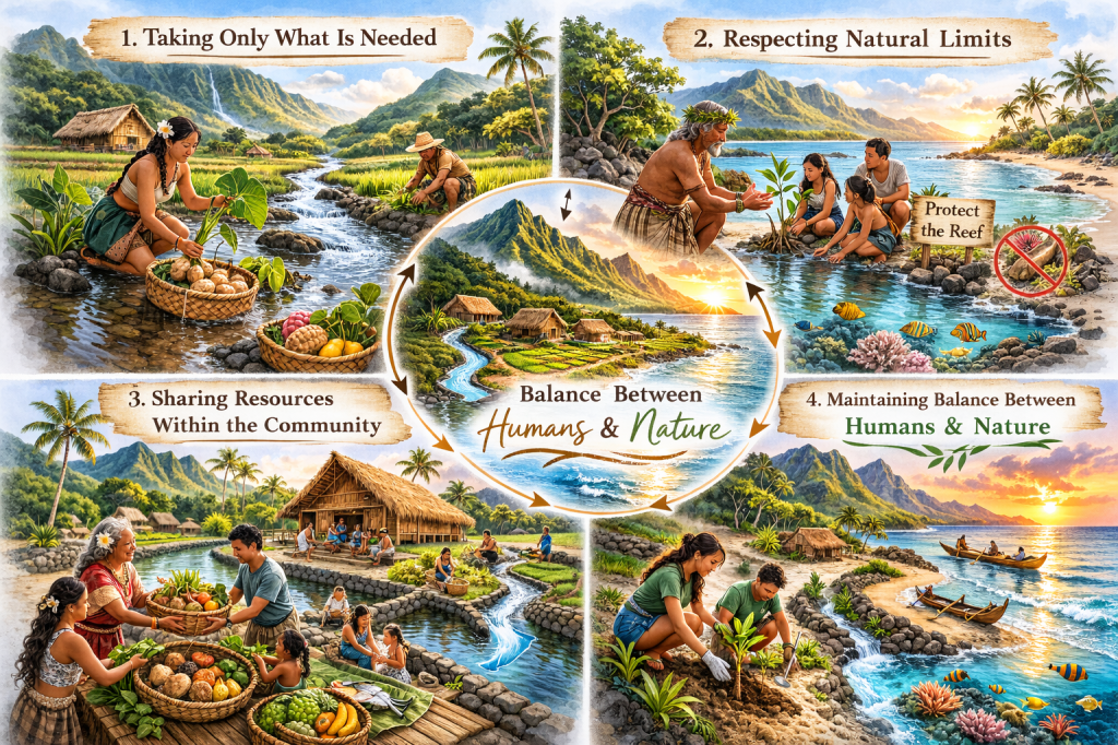 This understanding helped Hawaiian communities manage land carefully so that resources remained available for future generations.