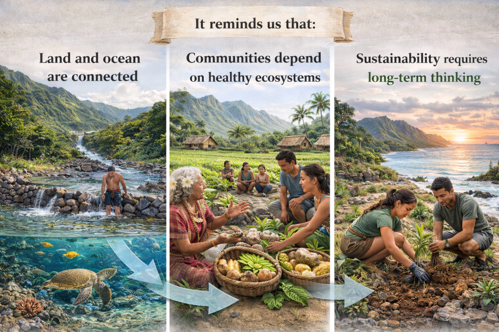 The ahupuaʻa system reminds us of something simple but powerful: the land and ocean are connected, communities depend on healthy ecosystems, and sustainability requires long-term thinking.